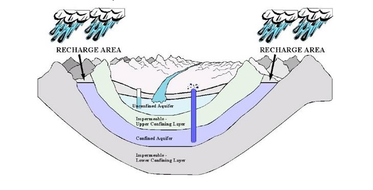 Dintr-un strat acvifer plin pana la saturatie, apa poate iesi la suprafata solului,